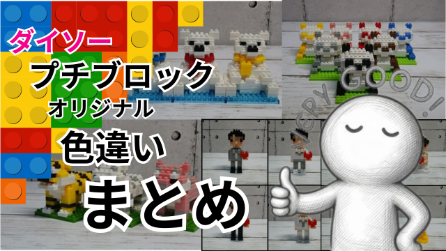 今回は、ダイソーのプチブロックの余りを使って作った「色違いオリジナル作品」をまとめて紹介しました。