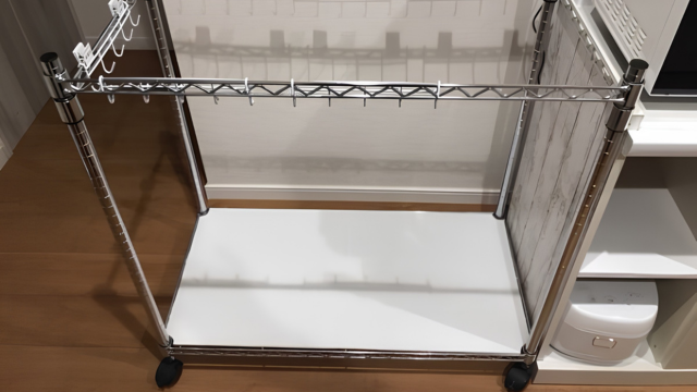 箱の中を掃除することもナシ、ワイヤーダストラックみたいに倒れることもナシ、スチールラックごと移動してクイックルワイパーで掃除ができる。