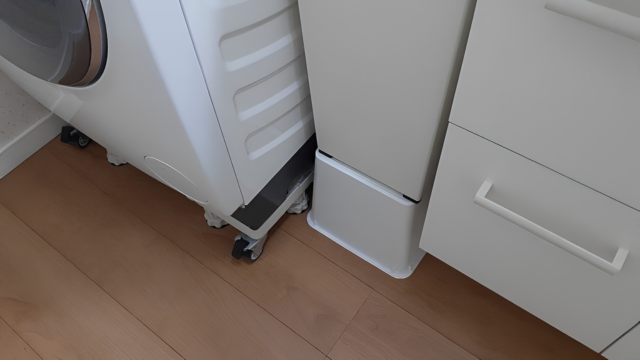 また、ドラム式の洗濯機はキャスターがついた台に設置している。